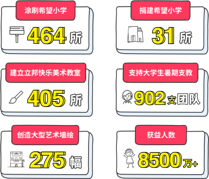 截止2022年,立邦「為愛上色」中國大學(xué)生農(nóng)村支教獎累計支持全國187所高校,602支大學(xué)生團隊,完成14,345余天公益事件,影響人數(shù)近3,410萬人。